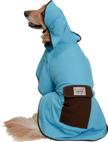 でも、いちいちカッパを着させるほどの雨模様でもないし・・・雪がチラホラの季節にも手軽にこういうポンチョ系のレインウェアをはおっての散歩はきっと楽しくなるかも♪ |