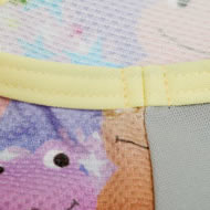 丈夫で汚れがすぐ落ちるカエルさん柄部分の素材は、六角形のハニカム構造でいろんな方向から引っ張っても強い!