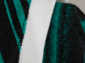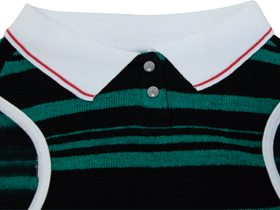 黒を基調とした冬色ボーダーに、白い衿がとてもかわいい“きちんと感”のあるウェアです。