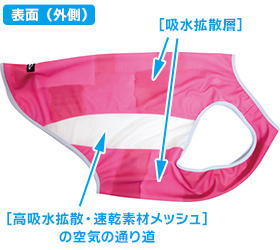 ワンちゃんとウェアの間に手を差し入れてみて下さい。その「ひんやり感」に驚きますよ♪