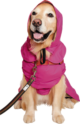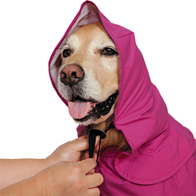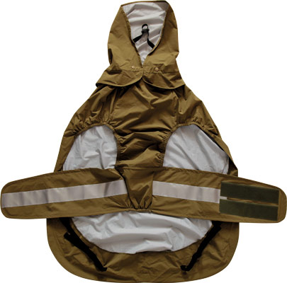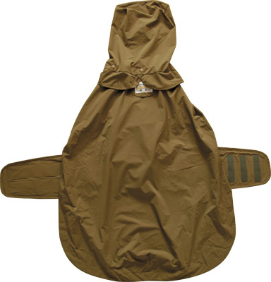 フードの“スカート”部分を大きく作ってあるので、身ごろが少しズレても雨が入りません。 |