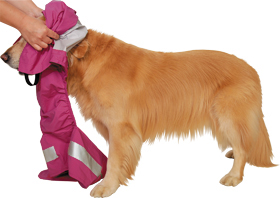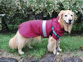 お腹ベルトには反射テープ付き、夜道のお散歩でも安心です。 |
