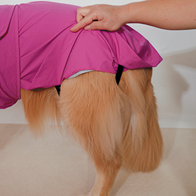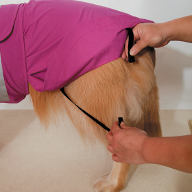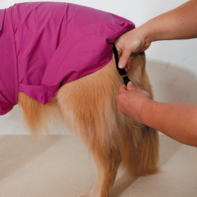 (↓)背中のマジックテープで止める“前たれ”(首からお腹を覆う布)の前足の付け根周りはゴムギャザーで伸縮するので長さ調整ができます★('-^v) |