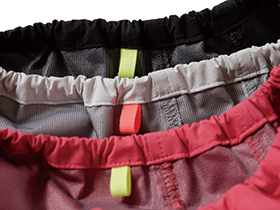 スヌードはゴム調整穴からゴムを引き出すことで顔周りの大きさが調整可能です。