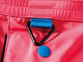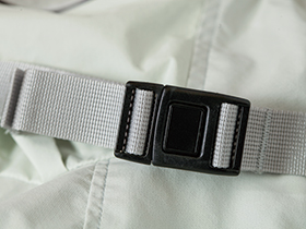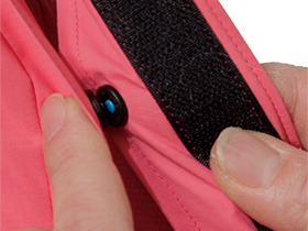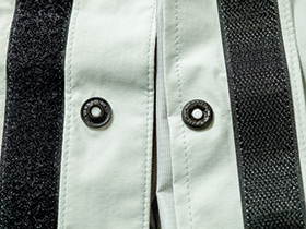 スナップボタンと面ファスナーを組み合わせているので、雨水の浸入を防ぎます。