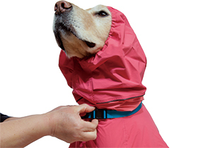 ワンちゃんの首にフィットさせることで引っ張られた際のウェアの引き裂きを防止します。