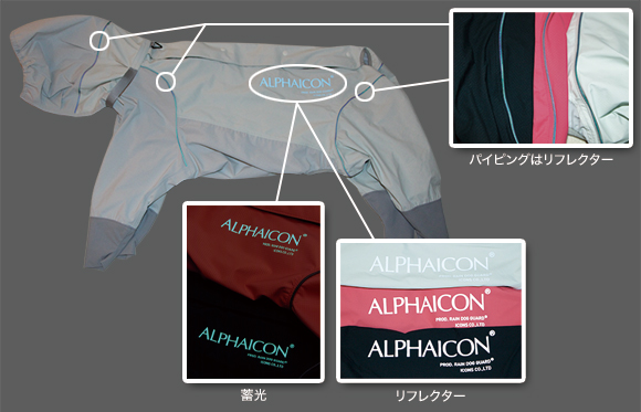 ロゴプリント、パイピングはリフレクターと蓄光機能を搭載しているので、夜のお散歩でも安心です。(色によって仕様が異なります。)