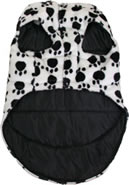 たくさんついた足あと柄がとっても可愛い、中綿入りのあったか〜いボアのベストです。