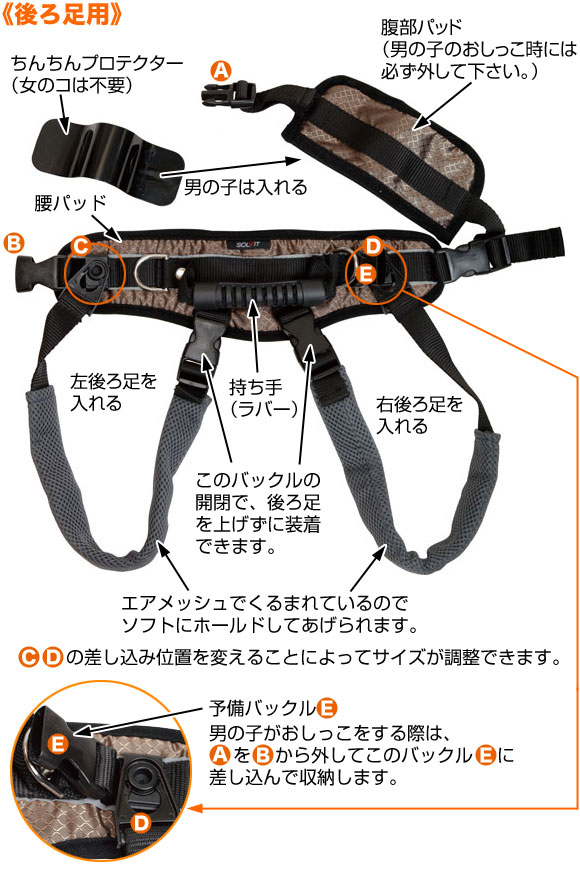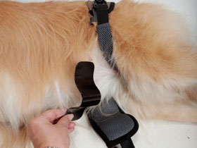 | 後ろ足用は、腰を支えてあげるだけでなく、「お尻」を持ち上げるのにとても便利で有効です。 |