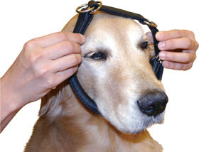 首輪のように、一本にして装着するので、ぴったりサイズにすればスッポ抜けの心配が少なくなります。 頭をかぶらせて装着することもできます。