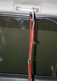 キャンプなどアウトドアで、車の牽引用フックにリードをつなげることができます。 車内の取っ手にロッキングカラビナを通しておけば、ちょっとした小物をサッとぶら下げられます。