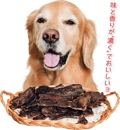 薄めのスライスで硬くないジャーキーなので、硬いものが苦手なシニアさんにも食べてもらいやすいです。