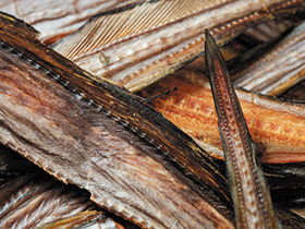 ハモのしっぽを骨までサクサクに乾燥させただけの無添加・無着色で安心・安全なおやつです。