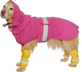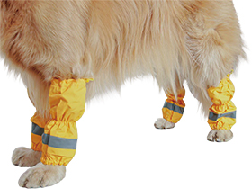 雨の日や雨上がりのお散歩に、サッと履かせてあげやすい筒状のレッグガードです。