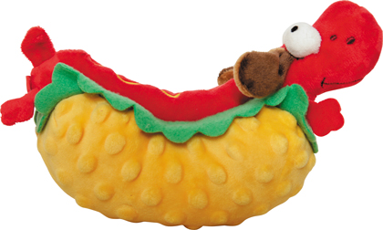 タコス、ハンバーガー、ホットドッグの中に動物が挟まったユニークなぬいぐるみおもちゃです。