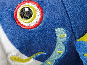 目やヒゲなど刺繍されています。