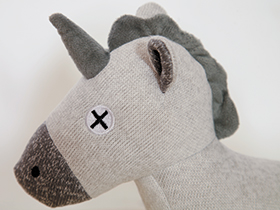 ブラウンのお馬さんにはツノがありませんが、グレーのお馬さんにはツノがあります。