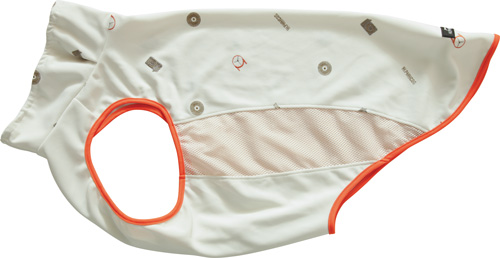 ウェアに水分を含ませることにより発生する「気化熱」を利用してワンちゃんの体温上昇を防ぐだけでなく、吸水速乾性、クーリング(冷却)機能、遮熱効果、UVカット効果等、多くの機能性を凝縮しドライで軽い着心地を実現しました。