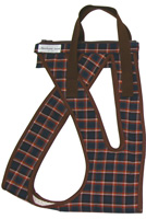 「肘ハニカム当て&カイロポケット付長袖T」天竺ボーダー・サーモン×グレーSサイズの上に「着たままねんねのハニカム胴着」チェック・茶Mサイズをもいもい着用(ゴールデンレトリーバー 29kg ♀:やや小柄な太めちゃん)